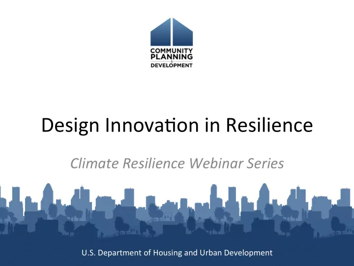 Design InnovaOon in Resilience Climate Resilience Webinar Series U.S. Department ¡of Housing and Urban Development ¡ ¡ ¡ ¡ ¡ ¡