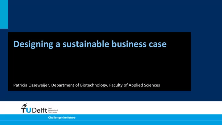 Designing ¡a ¡sustainable ¡business ¡case ¡ Patricia ¡Osseweijer, ¡Department ¡of ¡Biotechnology, ¡Faculty ¡of ¡Applied ¡Sciences ¡