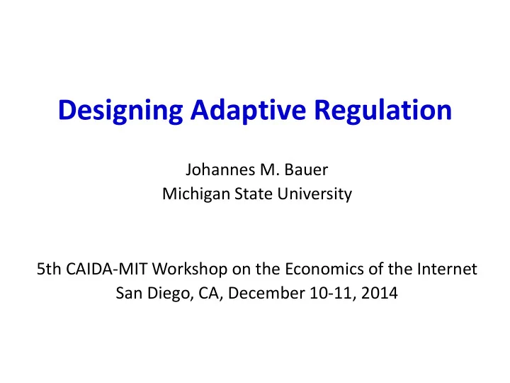Designing Adaptive Regulation Johannes M. Bauer Michigan State University 5th CAIDA-MIT Workshop on the Economics of the Internet San Diego, CA, December 10-11, 2014