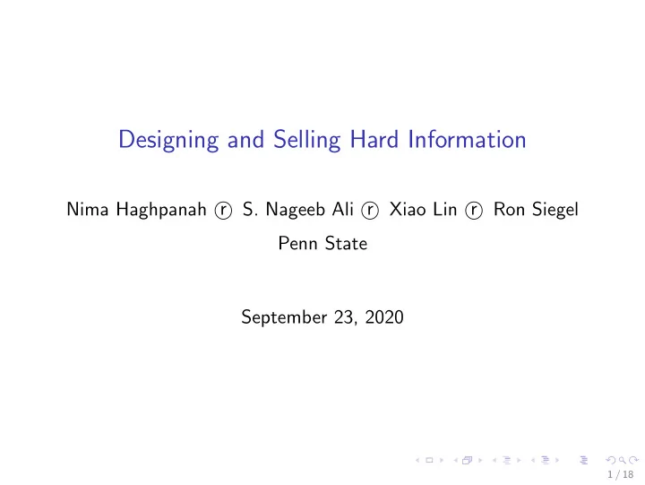 Designing and Selling Hard Information Nima Haghpanah r � S. Nageeb Ali r � Xiao Lin r � Ron Siegel Penn State September 23, 2020 1 / 18