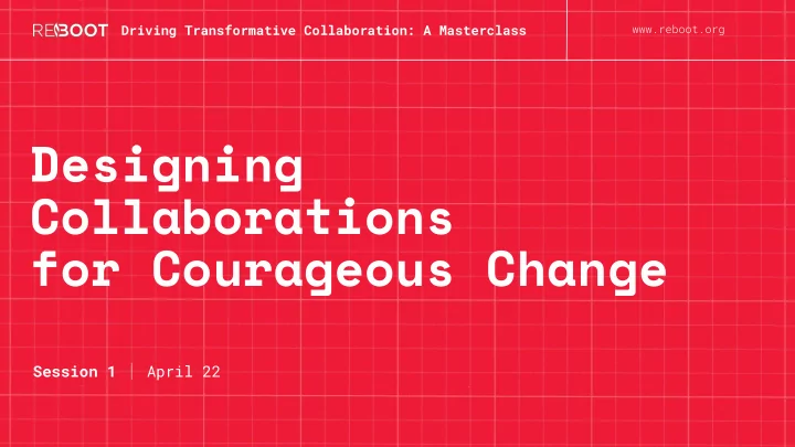 Driving Transformative Collaboration: A Masterclass www.reboot.org Designing Collaborations for Courageous Change Session 1 | April 22