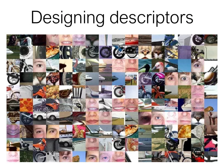 Overview of today’s lecture • Why do we need feature descriptors? • Designing feature descriptors. • MOPS descriptor. • GIST descriptor. • Histogram of Textons descriptor. • HOG descriptor. • SURF descriptor. • SIFT.