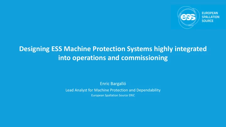 Designing ESS Machine Protection Systems highly integrated into operations and commissioning Enric Bargalló Lead Analyst for Machine Protection and Dependability European Spallation Source ERIC