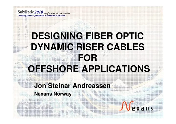 conference & convention enabling the next generation of networks & services DESIGNING FIBER OPTIC DYNAMIC RISER CABLES FOR FOR OFFSHORE APPLICATIONS Jon Steinar Andreassen Nexans Norway