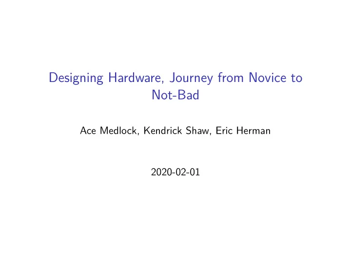 Designing Hardware, Journey from Novice to Not-Bad Ace Medlock, Kendrick Shaw, Eric Herman 2020-02-01