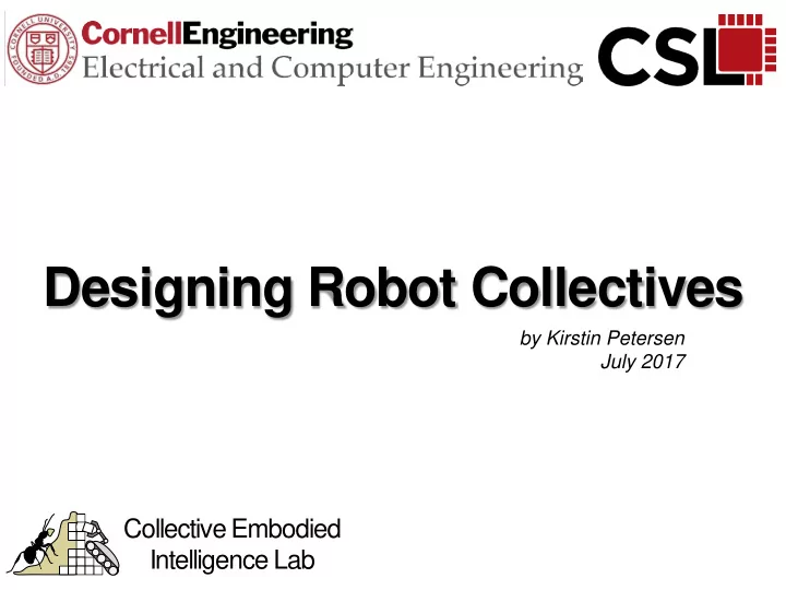 Designing Robot Collectives by Kirstin Petersen July 2017 Collective Embodied Intelligence Lab