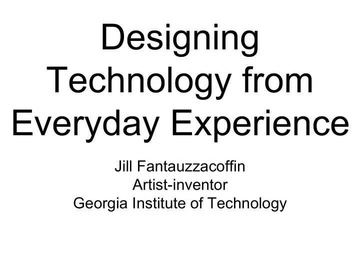 Designing Technology from Everyday Experience Jill Fantauzzacoffin Artist-inventor Georgia Institute of Technology