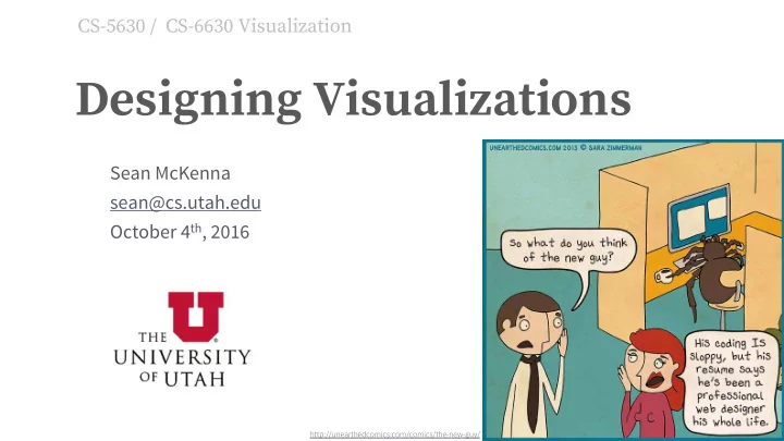 CS-5630 / CS-6630 Visualization Designing Visualizations Sean McKenna sean@cs.utah.edu October 4 th , 2016 http://unearthedcomics.com/comics/the-new-guy/