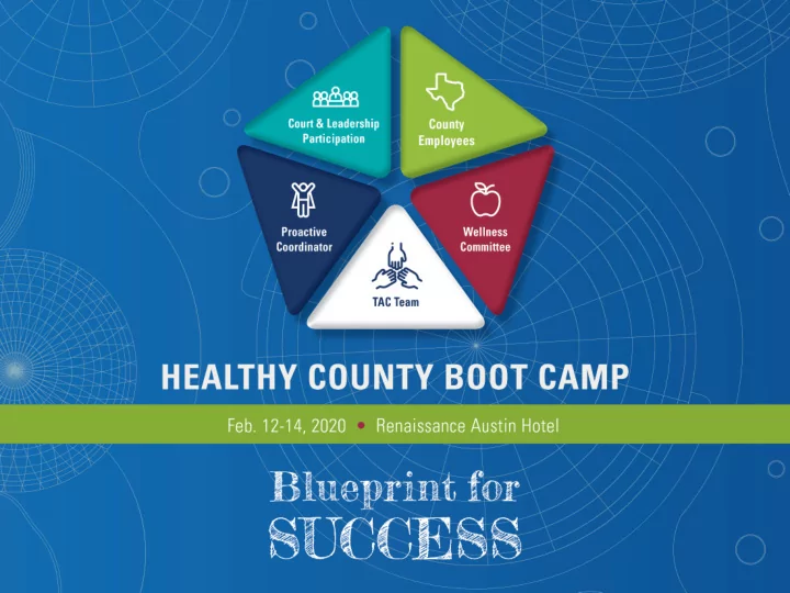 KEY PLAYERS Wellness Coordinators and Sponsors • Be a Wellness CHAMPION! • Communicate & encourage initiatives • Monitor implementation & provide resources • Develop action plan for use of Employer Rewards (with input of county representatives/Wellness Committee) • Attend TAC Wellness Trainings/Conferences (expenses paid by TAC HEBP)