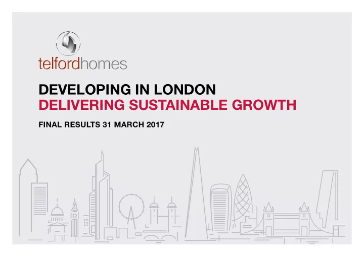 DEVELOPING IN LONDON DELIVERING SUSTAINABLE GROWTH FINAL RESULTS 31 MARCH 2017