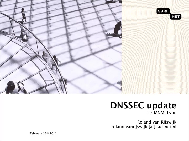 DNSSEC update TF MNM, Lyon Roland van Rijswijk roland.vanrijswijk [at] surfnet.nl February 16 th 2011