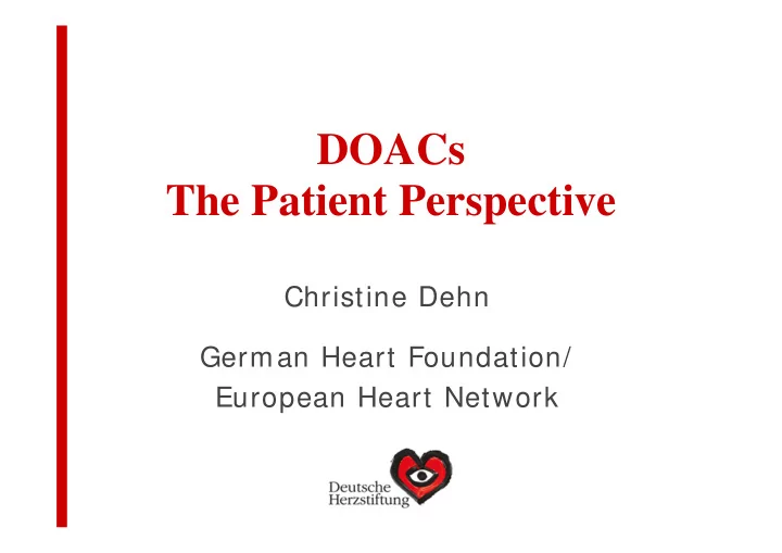 DOACs The Patient Perspective Christine Dehn German Heart Foundation/ European Heart Network
