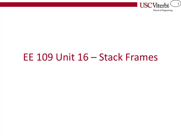 6 Stack Frame Motivation • Assume the following C code • Now assume each function was written by a different programmer on their own (w/o talking to each other) • What could go wrong? int x=5, nums[10]; int main() { caller(x, nums); return 0; } int caller(int z, int* dat) { int a = dat[0]-1; return callee(5)+a+z; } int callee(int val) { return (val+3)/2; }