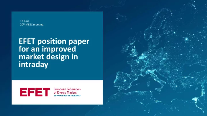 17 June Conference name, 5 April 2016 20 th MESC meeting EFET position paper One line title for an improved market design in intraday Irina Nikolova Comm. Coordinator, i.nikolova@efet.org