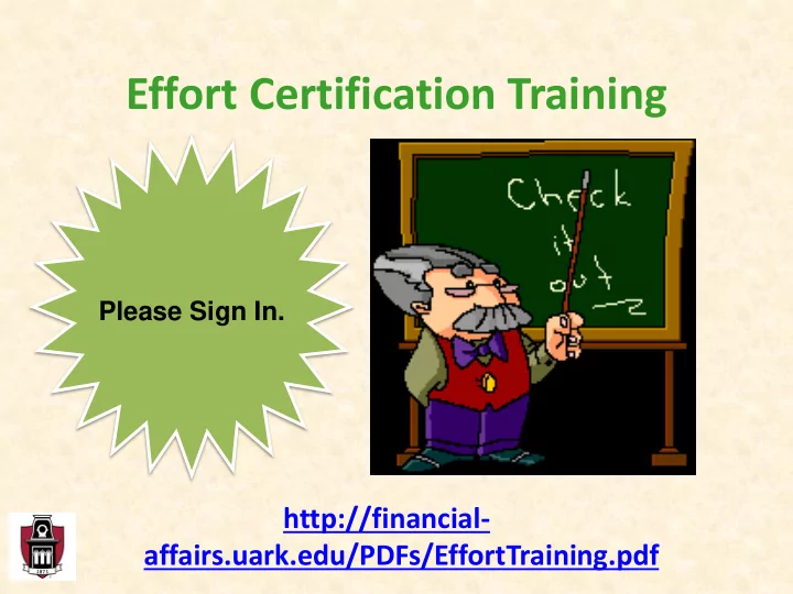 Effort Certification Training Please Sign In. http://financial- affairs.uark.edu/PDFs/EffortTraining.pdf
