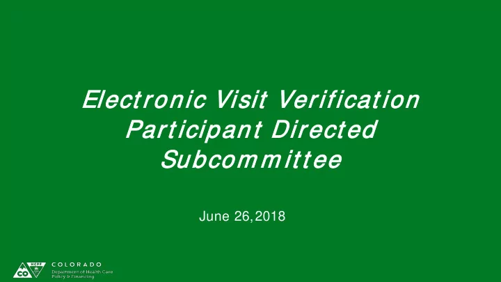Elect ron onic Visit Verificat ion on Part icipant Direct ed Subcom m it t ee ee June 26,2018