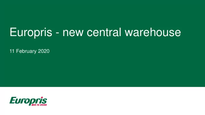 Disclaimer This presentation has been produced by Europris ASA (the "Company") exclusively for information purposes. This Presentation has not been approved, reviewed or registered with any public authority or stock exchange. Further to the aforementioned, this presentation is the result of an effort of the Company to present certain information which the Company has deemed relevant in accessible format. This Presentation is not intended to contain an exhaustive overview of the Company's present or future financial condition and there are several other facts and circumstances relevant to the Company and its present and future financial condition that not been included in this Presentation. This Presentation may not be disclosed, in whole or in part, or summarized or otherwise reproduced, distributed or referred to, in whole or in part, without prior written consent of the Company. This Presentation contains certain forward-looking statements relating to the business, financial performance and results of the Company and/or the industry in which it operates or intends to operate. Forward-looking statements concern future circumstances and results and other statements that are not historical facts, sometimes identified by the words "believes", expects", "predicts", "intends", "projects", "plans", "estimates", "aims", "foresees", "anticipates", "targets", and similar expressions. The forward-looking statements contained in this Presentation, including assumptions, opinions and views of the Company or cited from third party sources are solely opinions and forecasts which are subject to risks, uncertainties and other factors that may cause actual events to differ materially from any anticipated development. None of the Company or any of its subsidiary undertakings or any such person's officers or employees provides any assurance that the assumptions underlying such forward-looking statements are free from errors nor does any of them accept any responsibility for the future accuracy of the opinions expressed in this Presentation or the actual occurrence of the forecasted developments. The Company assumes no obligation to update any forward-looking statements or to conform these forward-looking statements to our actual results. Furthermore, information about past performance given in this Presentation is given for illustrative purposes only and should not be relied upon as, and is not, an indication of future performance. No representation or warranty (express or implied) is made as to, and no reliance should be placed on, any information, including projections, estimates, targets and opinions, contained herein, and no liability whatsoever is accepted as to any errors, omissions or misstatements contained herein, and, accordingly, neither the Company nor any of its parent or subsidiary undertakings or any such person’s officers or employees accepts any liability whatsoever arising directly or indirectly from the use of this document. By reviewing this Presentation you acknowledge that you will be solely responsible for your own assessment of the market and the market position of the Company and that you will conduct your own analysis and be solely responsible for forming your own view of the potential future performance of the businesses of the Company. This Presentation must be read in conjunction with the recent financial reports of the Company and the disclosures therein. The distribution of this Presentation in certain jurisdictions may be restricted by law. Persons in possession of this Presentation are required to inform themselves about, and to observe, any such restrictions. No action has been taken or will be taken in any jurisdiction by the Company that would permit the possession or distribution of this Presentation in any country or jurisdiction where specific action for that purpose is required. No shares or other securities are being offered pursuant to this Presentation. This Presentation does not constitute an offer to sell or form part of, and should not be construed as, an offer or invitation for the sale or subscription of, or a solicitation of an offer to buy or subscribe for, any shares or other securities in any jurisdiction, nor shall it or any part of it or the fact of its distribution form the basis of, or be relied on in connection with, any offer, contract, commitment or investment decision relating thereto, nor does it constitute a recommendation regarding the securities of the Company. By reviewing this Presentation you agree to be bound by the foregoing limitations. This Presentation speaks as of 5 December 2018. Neither the delivery of this Presentation nor any further discussions of the Company with any of the recipients shall, under any circumstances, create any implication that there has been no change in the affairs of the Company since such date. The Company does not intend, and does not assume any obligation, to update or correct any information included in this Presentation. This Presentation shall be governed by Norwegian law, and any disputes relating to hereto is subject to the sole and exclusive jurisdiction of Norwegian courts. 2