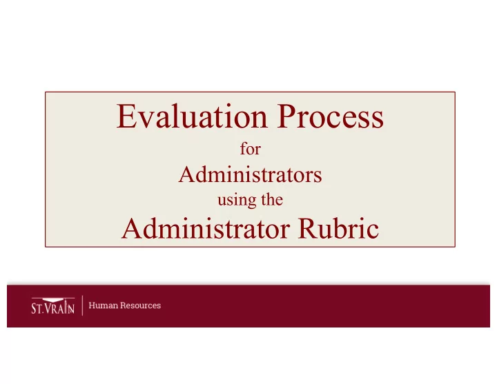 Final End of Year Review Report Preparation (continued) – Continue scrolling to the Professional Growth/MSL Plan section to review the results for each Goal/MSL enter by the administrator and to enter the evaluator final rating for each Goal/MSL. – Scroll to the end of the report to select the appropriate recommendation for future employment from the drop-down list. – Set the date for the meeting to share the Final End of Year Review Report with the administrator being evaluated. – Add any optional final evaluator comments. – When the Final End of Year Report is complete, select “Submit” at the bottom of the page to send the report to the administrator for review prior to or during the Final End of Year Review Meeting. • Deadline for submitting the Final End of Year Review Report and holding a meeting with the administrator being evaluated is June 30 th .