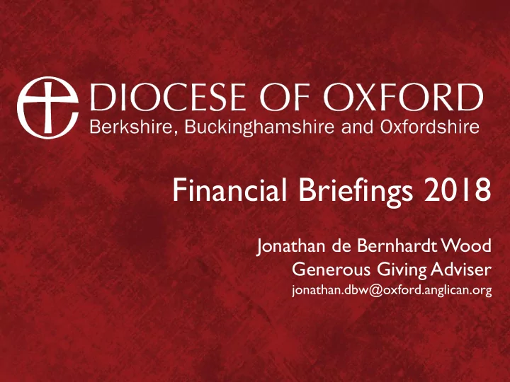 Financial Briefings 2018 Jonathan de Bernhardt Wood Generous Giving Adviser jonathan.dbw@oxford.anglican.org