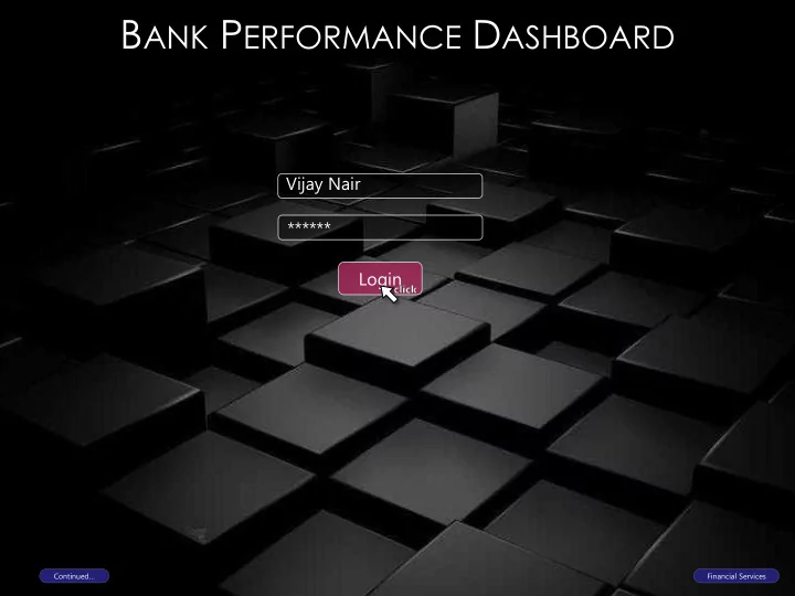 B ANK P ERFORMANCE D ASHBOARD Vijay Nair ****** Login Continued… Financial Services