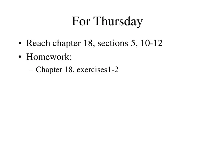 For Thursday • Reach chapter 18, sections 5, 10-12 • Homework: – Chapter 18, exercises1-2