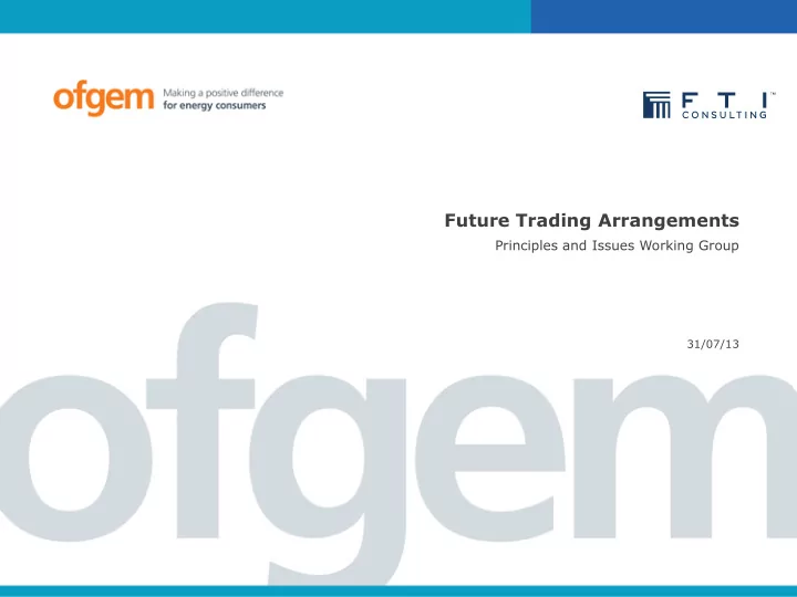 Future Trading Arrangements Principles and Issues Working Group 31/07/13