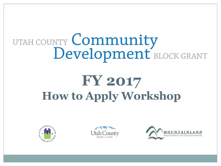 FY 2017 How to Apply Workshop