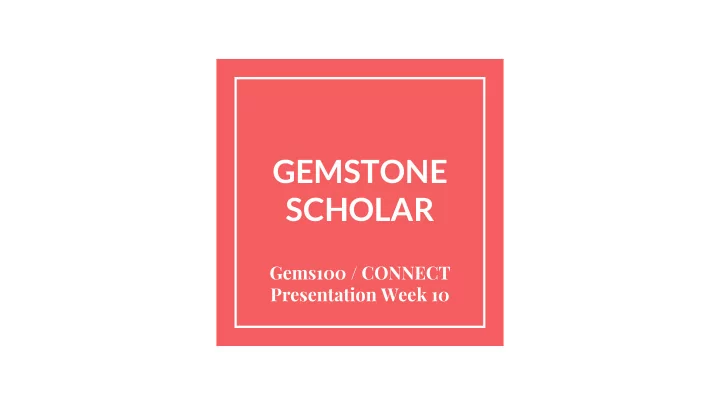 GEMSTONE SCHOLAR Gems100 / CONNECT Presentation Week 10