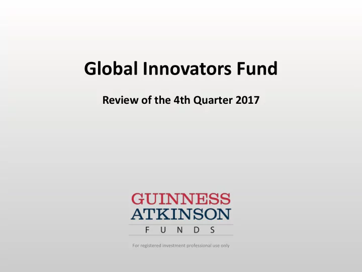 Global Innovators Fund Review of the 4th Quarter 2017 For registered investment professional use only