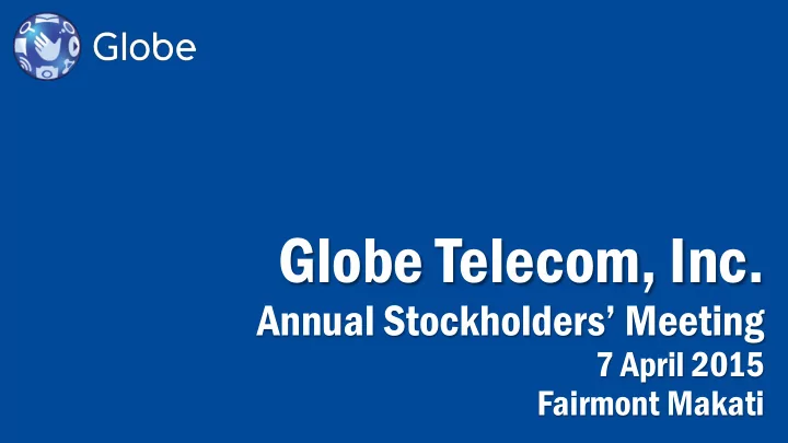 Globe Telecom, Inc. Annual Stockholders’ Meeting 7 April 2015 Fairmont Makati