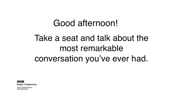 Good afternoon! Take a seat and talk about the most remarkable conversation you’ve ever had. User Experience Architecture