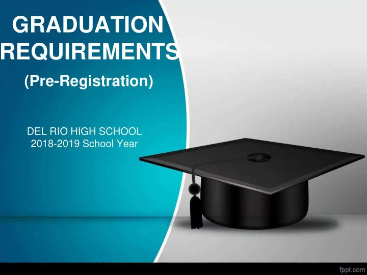 GRADUATION REQUIREMENTS (Pre-Registration) DEL RIO HIGH SCHOOL 2018-2019 School Year