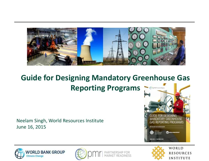 Guide for Designing Mandatory Greenhouse Gas Reporting Programs Neelam Singh, World Resources Institute June 16, 2015