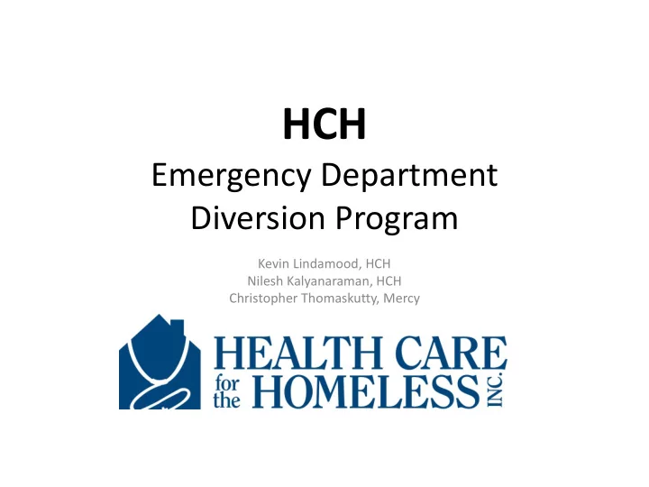 HCH Emergency Department Diversion Program Kevin Lindamood, HCH Nilesh Kalyanaraman, HCH Christopher Thomaskutty, Mercy