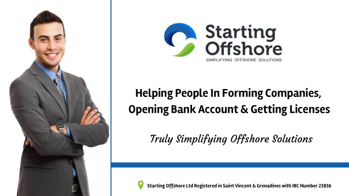 Helping People In Forming Companies, Opening Bank Account & Getting Licenses Truly Simplifying Offshore Solutions Starting Offshore Ltd Registered in Saint Vincent & Grenadines with IBC Number 23836