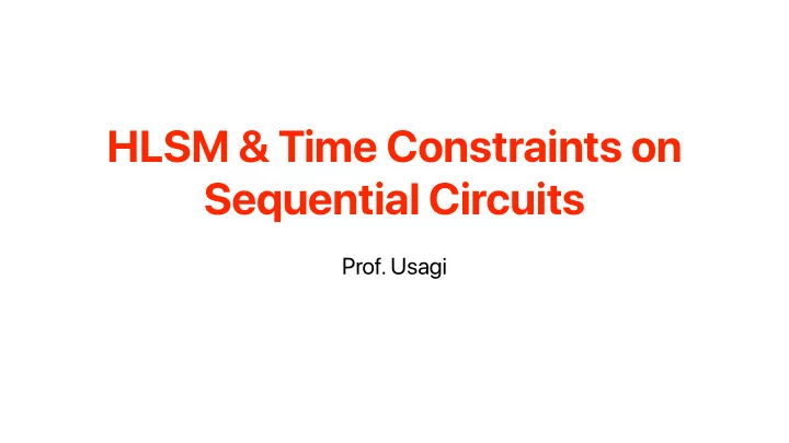 HLSM & Time Constraints on Sequential Circuits Prof. Usagi