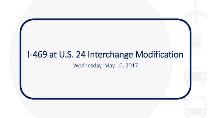 I-469 at U.S .S. . 24 In Interchange Modification Wednesday, May 10, 2017