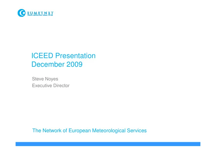 ICEED Presentation December 2009 Steve Noyes Executive Director The Network of European Meteorological Services G.I.E./EIG EUMETNET, Registered Number 0818.801.249