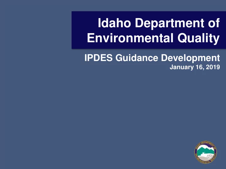Idaho Department of Environmental Quality IPDES Guidance Development January 16, 2019