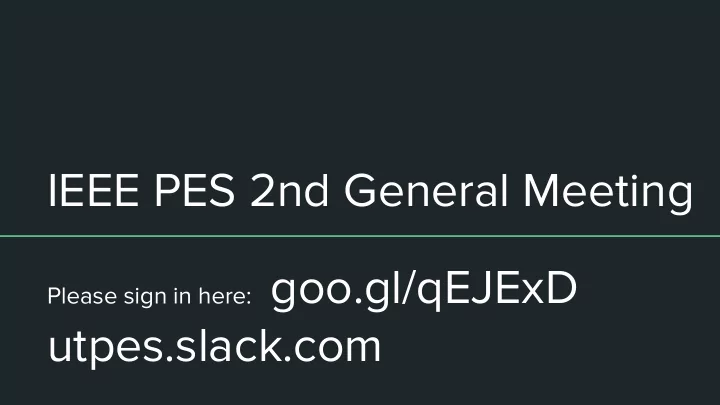 IEEE PES 2nd General Meeting Please sign in here: goo.gl/qEJExD utpes.slack.com