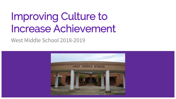 Im Improving Culture to In Increase Achievement West Middle School 2018-2019