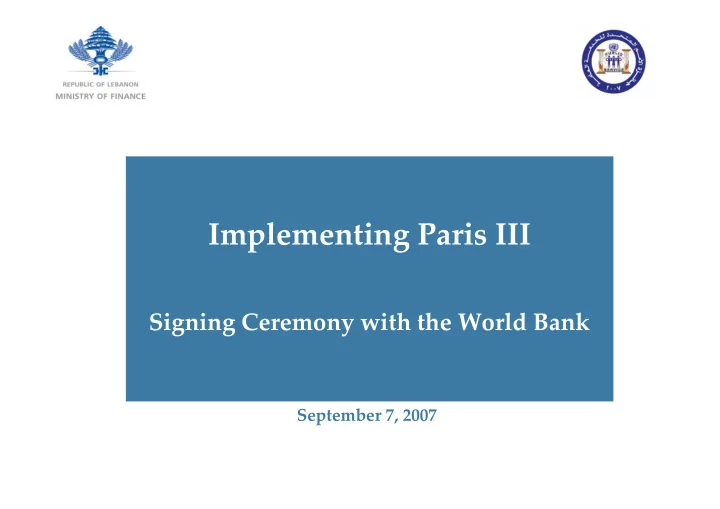 Implementing Paris III Signing Ceremony with the World Bank September 7, 2007