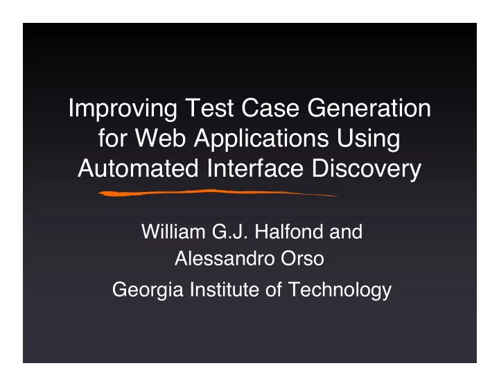 Improving Test Case Generation for Web Applications Using Automated Interface Discovery William G.J. Halfond and Alessandro Orso Georgia Institute of Technology