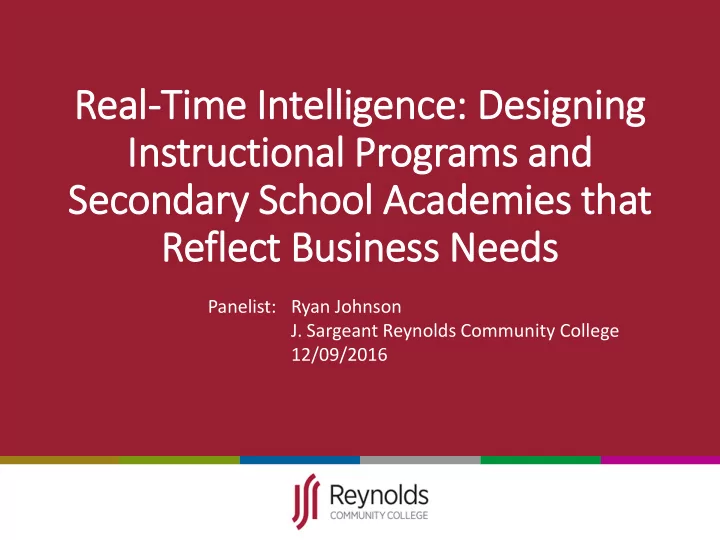 Real-Time In Intelligence: Designing In Instructional Programs and Secondary ry School Academies that Reflect Business Needs Panelist: Ryan Johnson J. Sargeant Reynolds Community College 12/09/2016