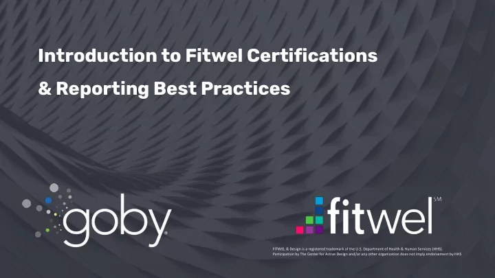 Introduction to Fitwel Certifications & Reporting Best Practices FITWEL & Design is a registered trademark of the U.S. Department of Health & Human Services (HHS). Participation by The Center for Active Design and/or any other organization does not imply endorsement by HHS