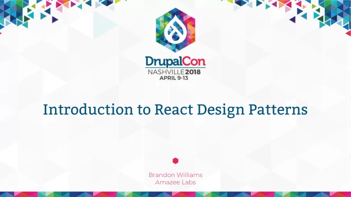 Introduction to React Design Patterns Brandon Williams Amazee Labs