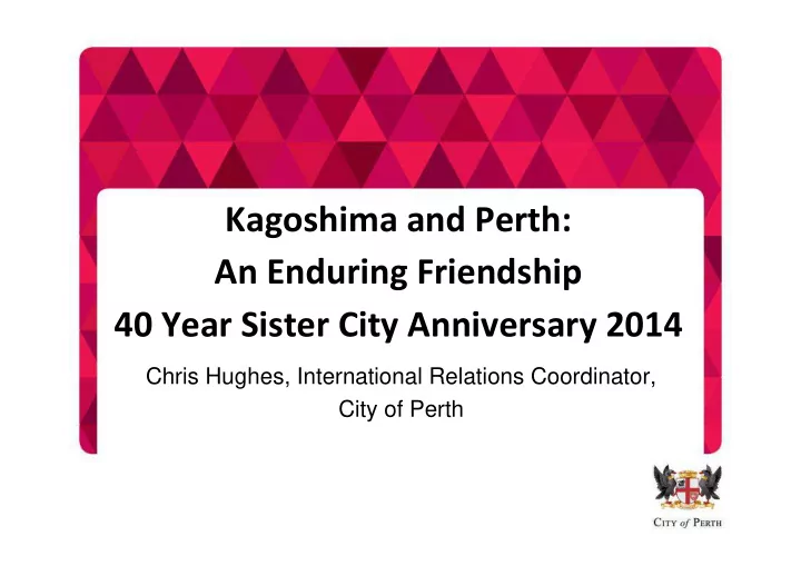 Kagoshima and Perth: An Enduring Friendship 40 Year Sister City Anniversary 2014 Chris Hughes, International Relations Coordinator, City of Perth