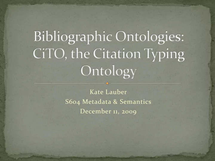 Kate Lauber S604 Metadata & Semantics December 11, 2009