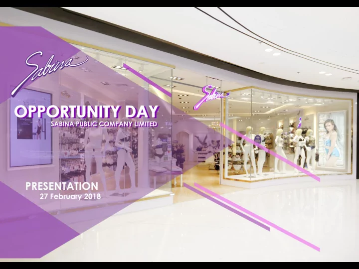 1. COMPANY OVERVIEW SABINA PUBLIC COMPANY LIMITED SABINA No. 1 Thai lingerie brand www.sabina.co.th www.sabina.co.th