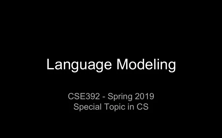 Language Modeling CSE392 - Spring 2019 Special Topic in CS